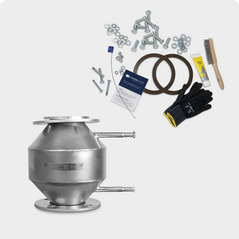 Catalyst EP-AL 254-90-2-2.1-BL300-DN100LF-Uni - to comply with a target emission of maximum 20 mg/Nm³ formaldehyde - Universal catalyst for MAN HAGL 2876, 2848 (2x), 2842 (2x) and various CHP manufacturers - Use of 2 catalysts in dual-flow exhaust system - Installation taking into account the installation direction - incl. seal set consisting of 1x seal, 2x split pin screw M16x60, assembly gloves, copper paste, wire brush, 2x flat seals DN100 and 8x screw package M16 Dimension: Ø258mm x L96mm Universal flange DN100 PN6/10/16 Installation length/flange distance: 300 mm incl. 2x sleeve M12